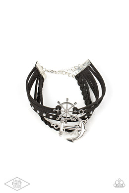 Paparazzi Anchors Away - Black Leather Bracelet "Life of the Party" Exlclusive