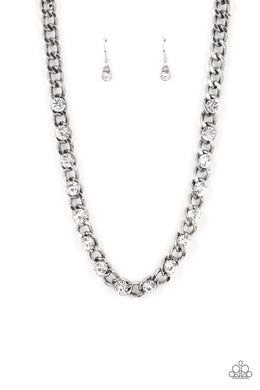 Paparazzi Major Moxie - White Rhinestone Necklace
