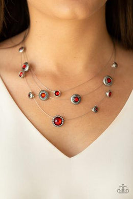 SHEER THING! - RED RHINESTONE SILVER WIRE NECKLACE Paparazzi