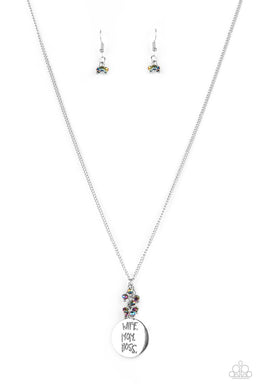 MOM BOSS - WHITE RHINESTONE SILVER PENDANT NECKLACE Paparazzi