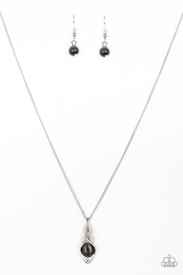 COASTAL CACHE - GREEN PEARL BEAD SMOKY GEM SILVER NECKLACE - PAPARAZZI